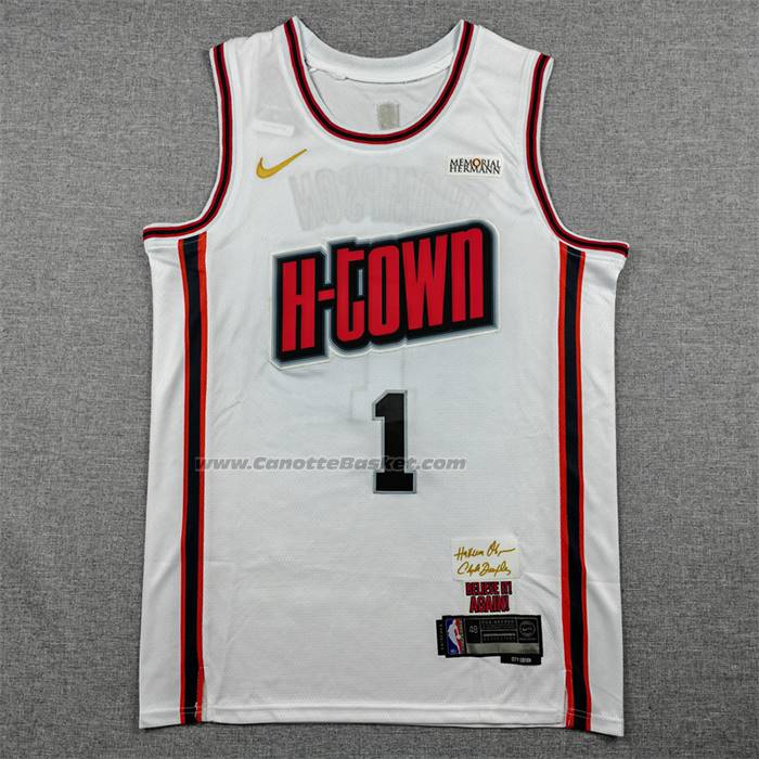 • Maglia Houston Rockets Amen Thompson No 1 Citta 2024-25 Bianco